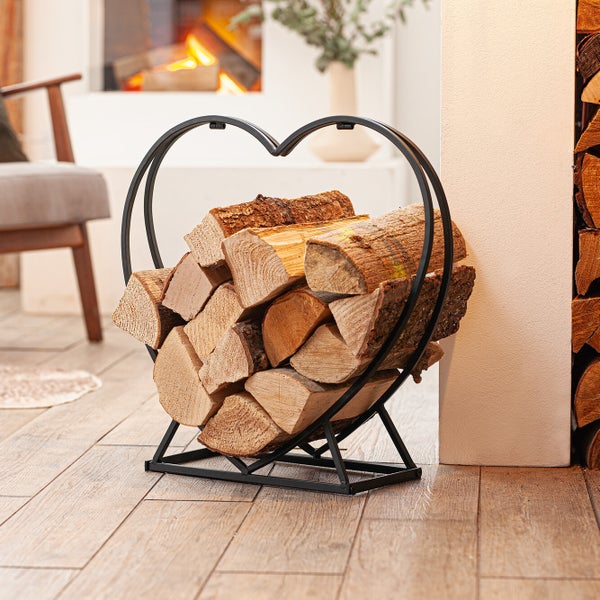 FRANK FLECHTWAREN | Kaminholzregal Herz, METALL, 55 x 18 x 54 cm