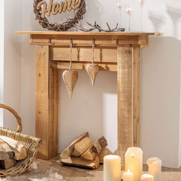 FRANK FLECHTWAREN | Kaminkonsole Rustikal, HOLZ, METALL, 100 x 22 x 89 cm, einfache Selbstmontage