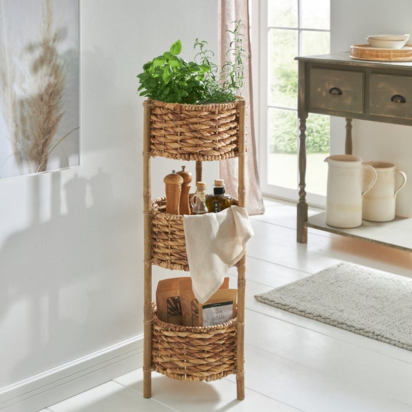 FRANK FLECHTWAREN | Korbregal Wasserhyazinthe, WASSERHYAZINTHE, BAMBUS, Ø 32 x 90 cm