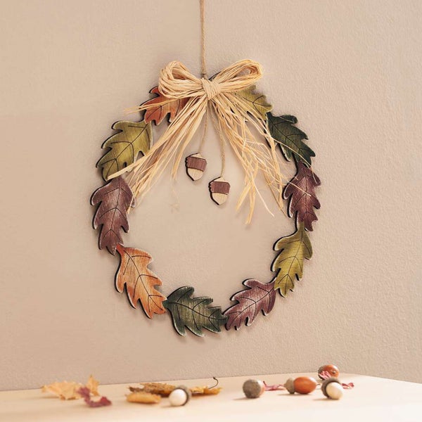 FRANK FLECHTWAREN | Kranz Eichenlaub, MDF, STROH , Ø 28 cm