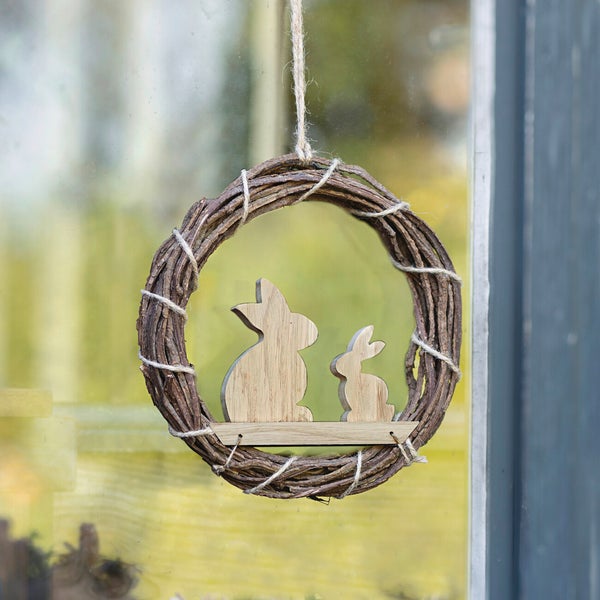 FRANK FLECHTWAREN | Kranz Häschenpaar, PAULOWNIA, REBENHOLZ, HANF, Ø 25 x 4 cm