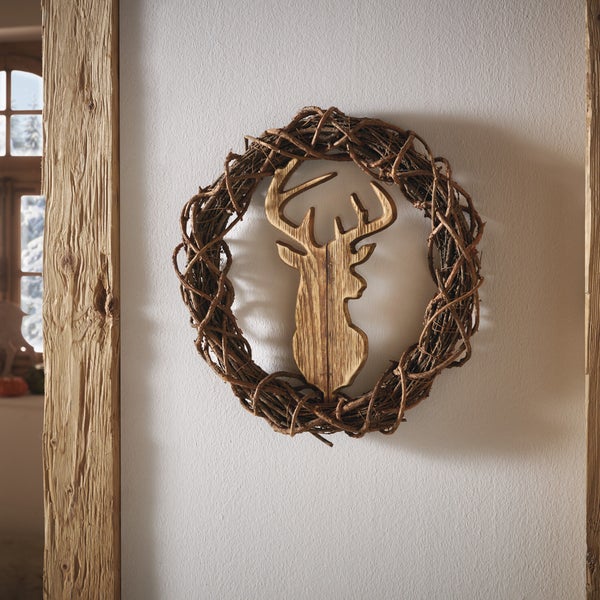 FRANK FLECHTWAREN | Kranz Hirsch, BIRKE, PAPPEL, Ø 38 x 8 cm