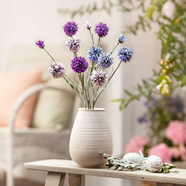 FRANK FLECHTWAREN | Kunstblume Kugeldistel, 3er Set, L: 59 cm, KUNSTSTOFF