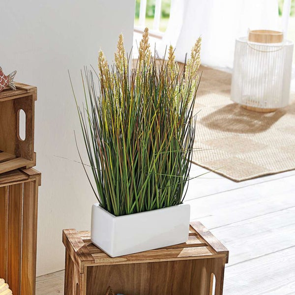 FRANK FLECHTWAREN | Kunstgras im Topf, KUNSTSTOFF, PORZELLAN, 23 x 9 x 46 cm