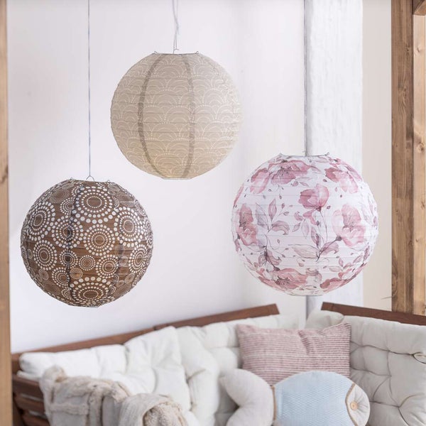 Die Lampion Harmony, 3er Set, ist ein stimmungsvolles Deko-Accessoire aus zartem Papier mit einem floralen Muster. Vielseitig verwendbar und mit Metallhaken zum Befestigen ausgestattet, sorgt dieses Set für eine harmonische Atmosphäre in Ihrem Zuhause. Ideal für besondere Anlässe oder als dauerhafte Dekoration.