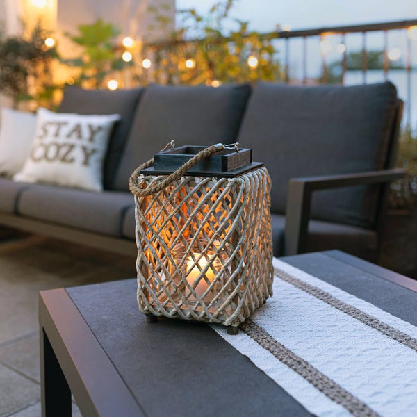FRANK FLECHTWAREN | Laterne Sincere, HOLZ, MAISSTROH, GLAS, HANF, 18 x 18 x 28,5 cm