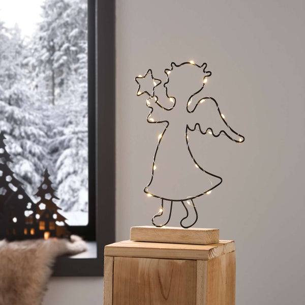 FRANK FLECHTWAREN | LED-Deko Engel mit Stern, METALL, HOLZ, KUNSTSTOFF, 18 x 5 x 28 cm