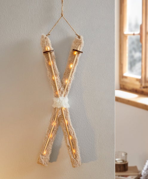 FRANK FLECHTWAREN | LED-Hänger Ski, 15 x 4 x 43 cm, HOLZ, KUNSTSTOFF