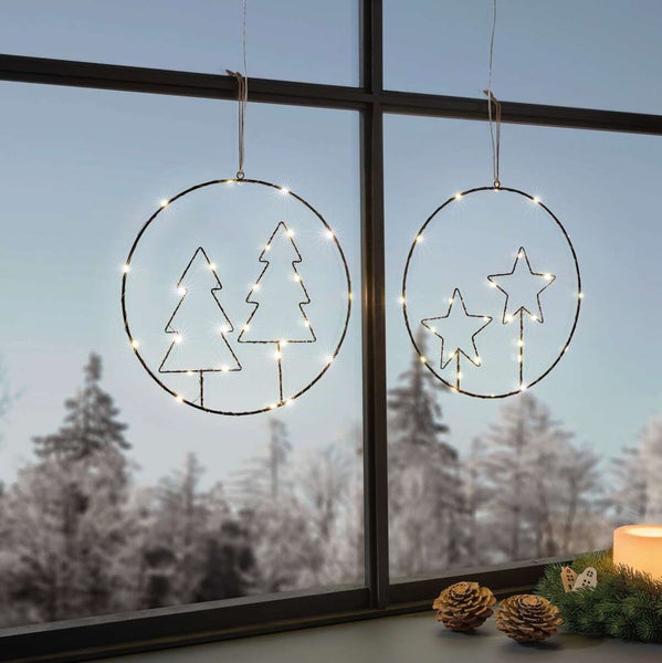 FRANK FLECHTWAREN | LED-Hänger Sterne & Tannen, 2er Set, METALL, KUNSTSTOFF , D: 30 cm