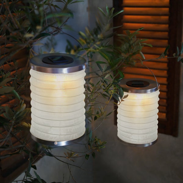 FRANK FLECHTWAREN | LED-Lampion Solar, 2er Set, METALL, KUNSTSTOFF, Ø 15 x 18 cm, GH 25 cm, für den Außenbereich geeignet