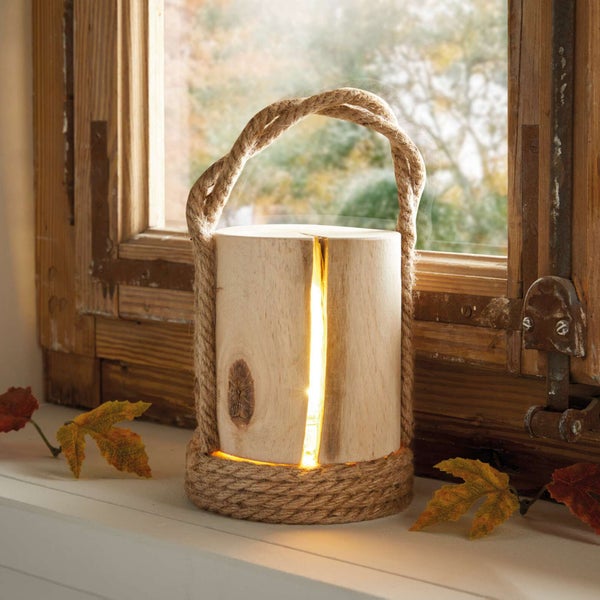 FRANK FLECHTWAREN | LED-Laterne Wood, PINIE, JUTE , Ø 10 x 11 cm, GH 14 cm