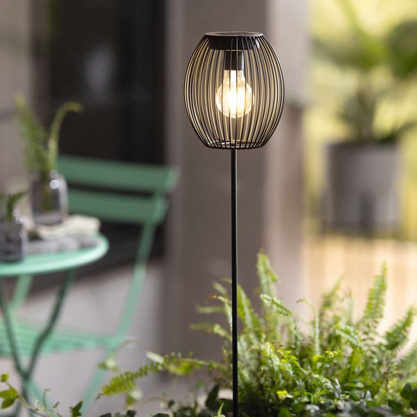 moderne Leuchtdeko, mattschwarz lackiertes Metall, Kunststoff, warmweiß leuchtende LED, Solarpanel, An-/Aus-Schalter auf der Oberseite