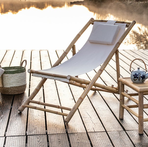FRANK FLECHTWAREN | Liegestuhl Tropical, BAMBUS, BAUMWOLLE, POLYESTER, voll ausgeklappt 119 x 58 x 64 cm, zusammengeklappt 135 x 58 cm, nur für den Innenbereich geeignet,