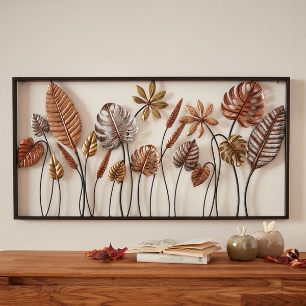 FRANK FLECHTWAREN | Metallbild Blätter, METALL, 90 x 2,5 x 45 cm