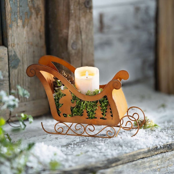 FRANK FLECHTWAREN | Metalldeko Schlitten, METALL , 25 x 10 x 17 cm