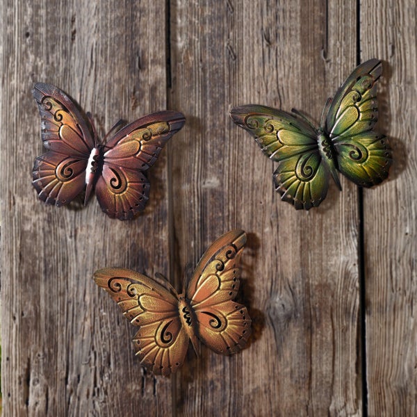FRANK FLECHTWAREN | Metalldeko Schmetterling, 3er Set, METALL, 24 x 19 cm