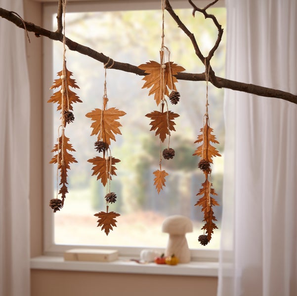FRANK FLECHTWAREN | Metallhänger Herbstblätter, 4er Set, METALL , ca. Gesamtlänge 45 cm