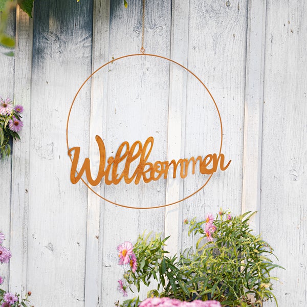 FRANK FLECHTWAREN | Metallring Willkommen, METALL, D: 40 cm