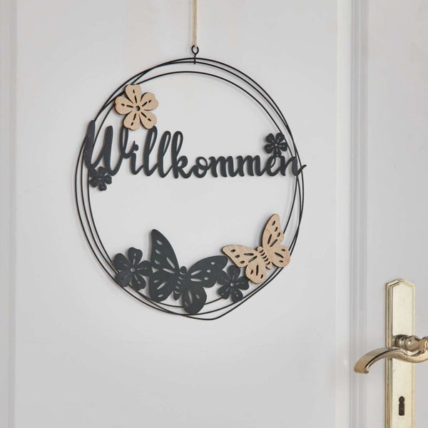 FRANK FLECHTWAREN | Metallring Willkommen, METALL, HOLZ, SISAL, D: 30 cm