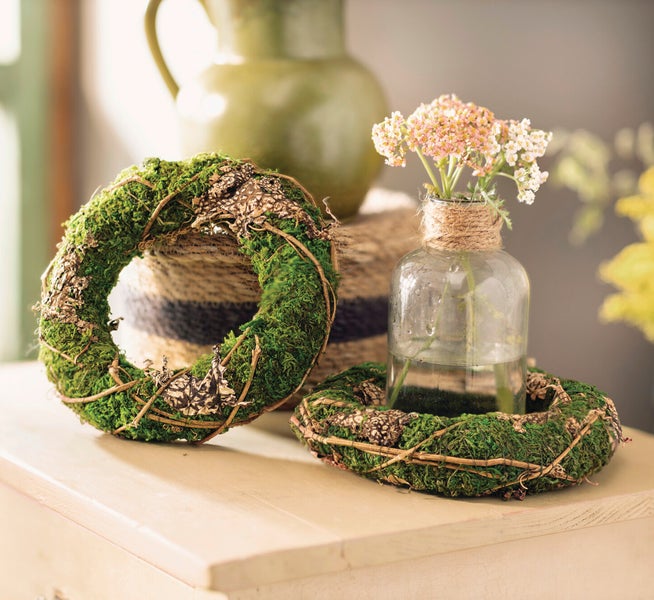 FRANK FLECHTWAREN | Mooskranz Petit, 2er Set, KUNSTSTOFF, MOOS, NATURMATERIALIEN, Ø 20 x 4 cm