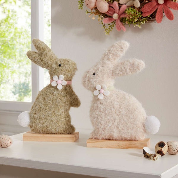 FRANK FLECHTWAREN | Osterdeko Häschen, 2er Set, FILZ AUS PET, HOLZ, POLYESTER, 14 x 5 x 23 cm, 15 x 5 x 23 cm