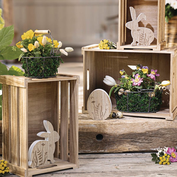 FRANK FLECHTWAREN | Osterdeko Hasen & Ei, 3er Set, MDF, 9,5 x 1,5 x 12 cm, 14 x 1,5 x 15 cm, 11,5 x 1,5 x 15,5 cm