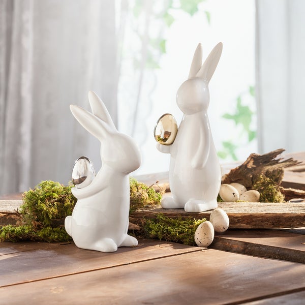 FRANK FLECHTWAREN | Osterhase Classical, 2er Set, PORZELLAN, Höhe 20 cm, 23 cm