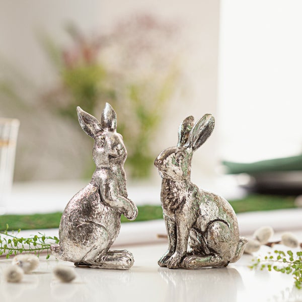 FRANK FLECHTWAREN | Osterhase Silberglanz, 2er Set, KUNSTSTOFF, Höhe 10 cm, 11 cm