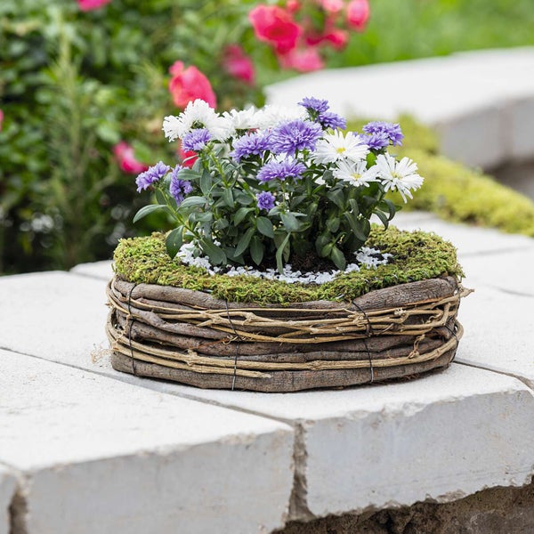 FRANK FLECHTWAREN | Pflanzer Natur, METALL, MOOS, WEIDE, KUNSTSTOFF, Ø 26 x 9 cm, innen-Ø 15 cm