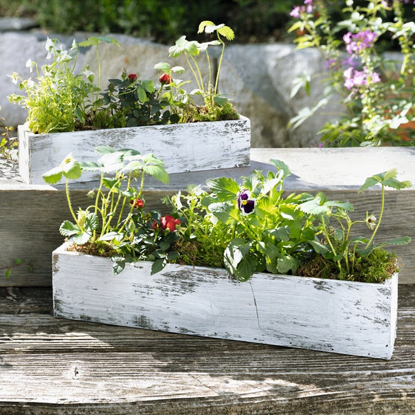 FRANK FLECHTWAREN | Pflanzer Shabby-White, 2er Set, HOLZ, FOLIE, 33 x 8 x 7 cm, 40 x 10 x 8 cm