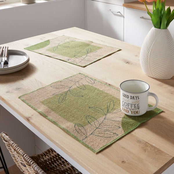 FRANK FLECHTWAREN | Platzmatte Green Nature, 2er Set, JUTE, KUNSTSTOFF, 43 x 30 cm