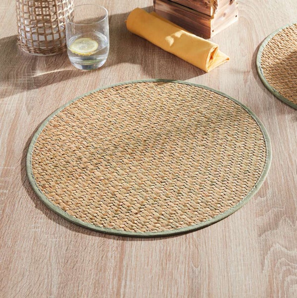 FRANK FLECHTWAREN | Platzmatte Seegras, 2er Set, SEEGRAS, STOFF, Ø 38 cm