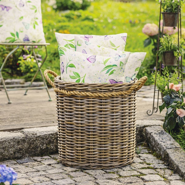 FRANK FLECHTWAREN | Rattankorb Koboo-Grey, RATTAN, HANF, Ø 50 x 50 cm