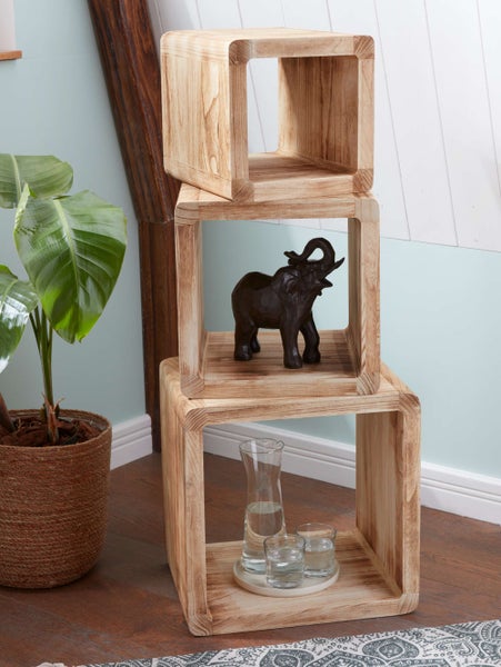 FRANK FLECHTWAREN | Regal-Cubes Geflammt, 3er Set, HOLZ, 27 x 35 x 27 cm, 35 x 35 x 35 cm, 44 x 35 x 44 cm, Holzstärke 3 cm, ohne Deko
