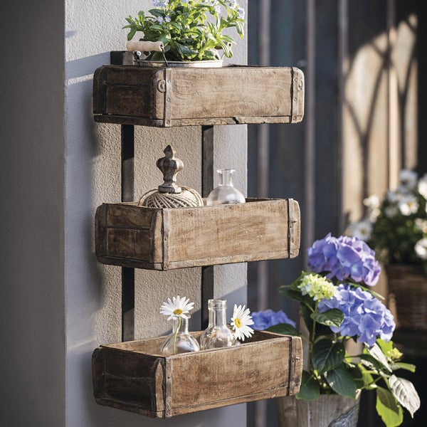 FRANK FLECHTWAREN | Regal Ziegelform, HOLZ, METALL, 31 x 14 x 58 cm