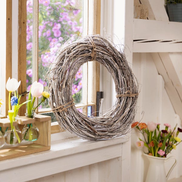 FRANK FLECHTWAREN | Reisigkranz White Charme, HOLZ, HANF, Ø 45 cm