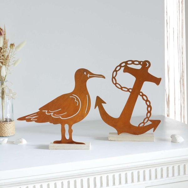 FRANK FLECHTWAREN | Rostdeko Anker & Möwe, 2er Set, 29 x 4,5 x 25 cm, 22,5x 4,5 x 26,5 cm , METALL, HOLZ