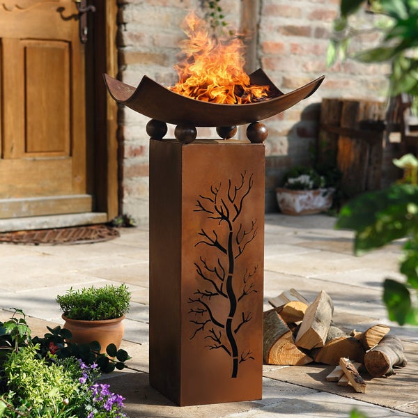 FRANK FLECHTWAREN | Säule Feuerschale, 2tlg., METALL, Schale 40 x 40 x 14cm, Gestell 20 x 20 x 60 cm, GH 78 cm, nur für den Außenbereich geeignet