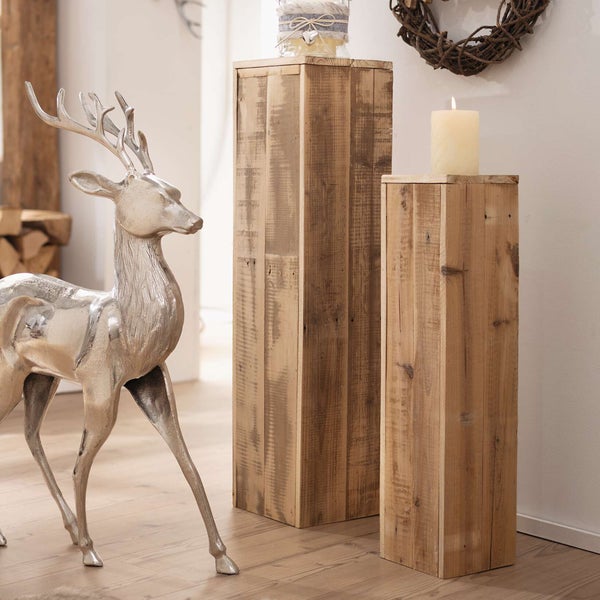 FRANK FLECHTWAREN | Säule Rustikal, 2er Set, HOLZ, 15 x 15 x 60 cm, 20 x 20 x 79 cm