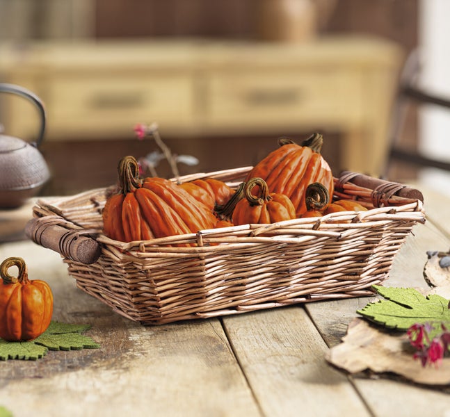 FRANK FLECHTWAREN | Schale mit Holzgriffen, WEIDE, 40 x 26 x 9 cm