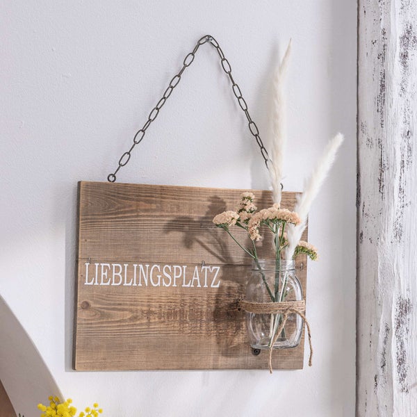 FRANK FLECHTWAREN | Schild Lieblingsplatz, HOLZ, GLAS, METALL, JUTE, 38 x 28 x 12 cm