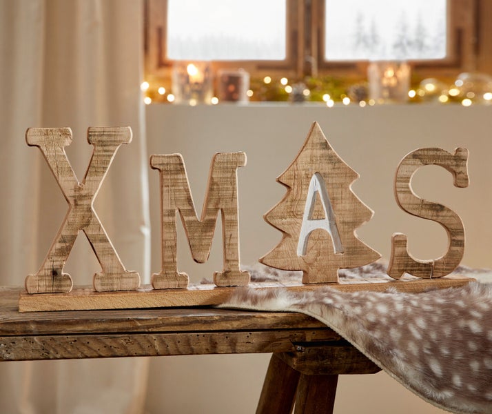 FRANK FLECHTWAREN | Schriftzug XMAS, 44 x 5,5 x 18 cm, KIEFER, PAPPEL