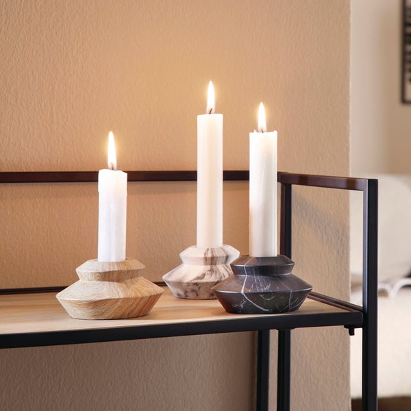 FRANK FLECHTWAREN | Stabkerzenhalter Marmor, 3er Set, POLYRESIN, 8,5 x 8,5 x 4,5 cm