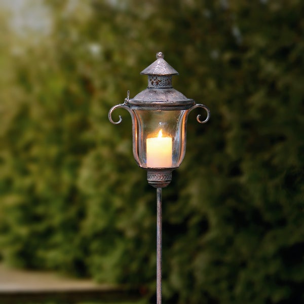 FRANK FLECHTWAREN | Stablaterne Shabby-Grey, METALL, 20 x 12 x 115 cm, Glaseinsatz Ø 10 x 13 cm, passend für Kerzen max. Ø 6 cm, einfache Selbstmontage, ohne Kerze