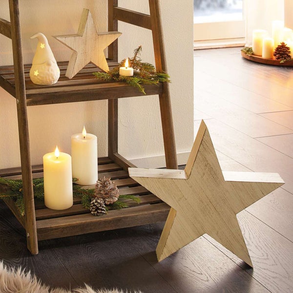 FRANK FLECHTWAREN | Stern Whitewashed, 2er Set, HOLZ , 20 x 4 x 20 cm, 35 x 6 x 35 cm