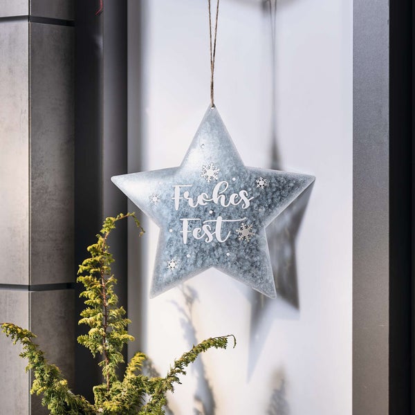 FRANK FLECHTWAREN | Sternhänger Frohes Fest, METALL , 36,5 x 35 cm