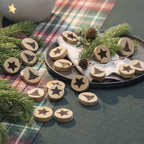 FRANK FLECHTWAREN | Streudeko Stern & Tanne, 20er Set, ca. Ø 4-5 cm, EICHE