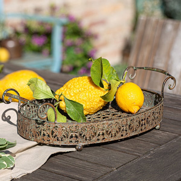 FRANK FLECHTWAREN | Tablett Antik, METALL, 43 x 26 x 12 cm