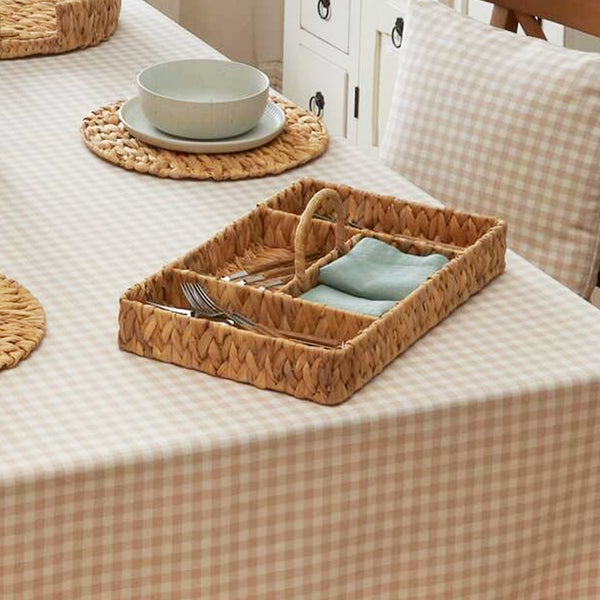 FRANK FLECHTWAREN | Tablettkorb Menage, WASSERHYAZINTHE, METALL, 43 x 26 x 5,5 cm