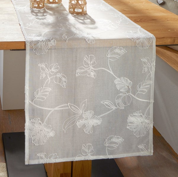 FRANK FLECHTWAREN | Tischläufer Blütenweiß, POLYESTER, 40 x 140 cm